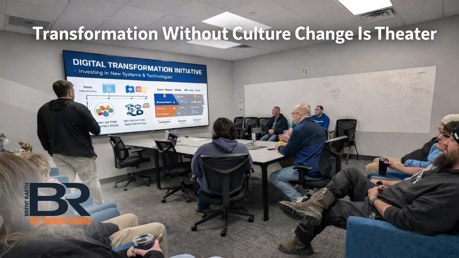 Until it is, every transformation initiative risks becoming what so many already are. An expensive performance on a well lit stage.
